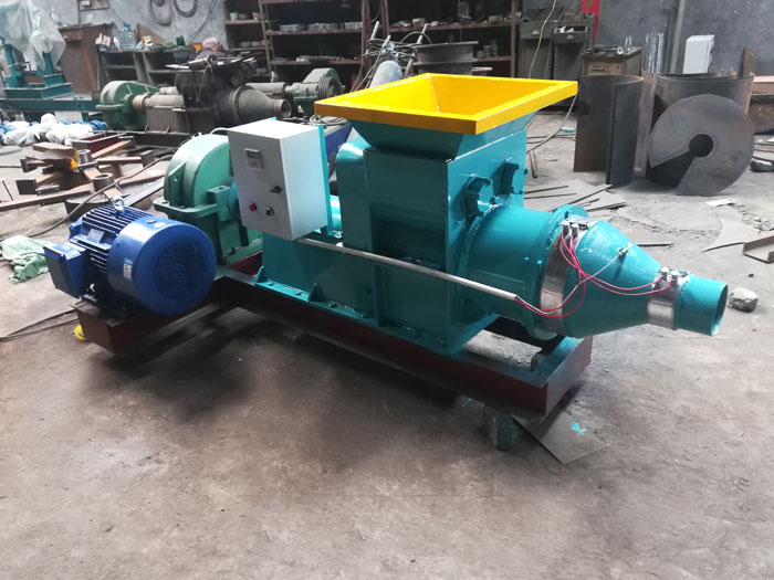 鞏義華新冶金廠生產(chǎn)的炮泥機由電動機、齒輪箱、機體、破碎攪拌機構(gòu)、成型脫模機構(gòu)、機座和工作附件等部分組成。礦用炮泥機的主要用途是為鉆孔爆破工程,生產(chǎn)堵塞炮眼的炮泥,廣泛使用于采礦、鐵道、公路、隧道、橋梁、建筑、交通、水利工程等行業(yè),多年以來,爆破工程所使用的炮泥均由工人在施工現(xiàn)場拌和粘土,用手工捏制而成,工作效率低,勞動強度大,工作環(huán)境差,炮泥成型很不規(guī)范,嚴重影響了爆破效果。華新廠研發(fā)生產(chǎn)的炮泥機作為具有現(xiàn)場動力來源方便、便于遷移、輸出成品速度可調(diào)、安全可靠等特點,解決了炮泥生產(chǎn)機械化和自動化的問題。同時,本廠還可以根據(jù)需要,更換炮泥擠出口的直徑,制作出現(xiàn)場生產(chǎn)所需的不同直徑規(guī)格的炮泥炮泥成型好、對炮眼封堵效果好等優(yōu)點。
